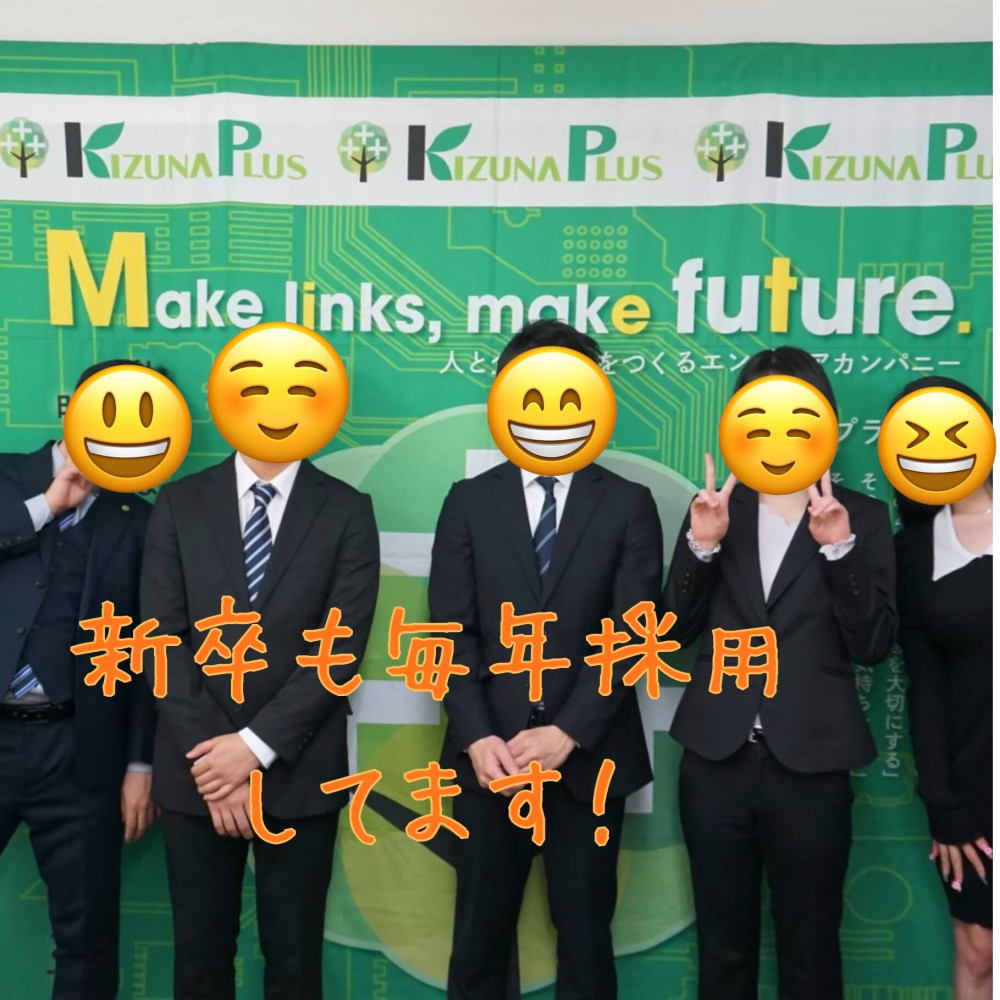 | 採用までの流れ | ここまでお読みいただきありがとうございます。 少しでもご興味をお持ちいただけましたら、まずはお気軽にご応募ください。 *WEBからのご応募は24時間受付中 *ご連絡・ご返信は平日9:00~18:00となります *ご不明点や気になることがあれば、お気軽にお問い合わせください! ▽カジュアル面談実施中▽ 「いきなり応募は不安…」 「仕事内容や職場の雰囲気を先に知りたい」 そんな方に向けて、カジュアル面談を実施しています。 下記エントリーフォームより ・お名前 ・メールアドレス ・ご希望日時 をご入力いただくだけでOK! *履歴書・職務経歴書は不要です。 ▽登録の際は…▽ <持ち物> ・履歴書 ・職務経歴書 <所要時間> ・約60分 ┗派遣会社のご紹介、ご経歴・スキルの確認、 ご希望条件のヒアリングなどを行います。 <曜日・時間> 平日:9:00~18:00 ※上記時間外をご希望の方も、お気軽にご相談ください。 ※WEB・対面どちらも対応可能です。 ▽派遣会社▽ キズナプラス株式会社 ※勤務地は東京都府中市(分倍河原駅より徒歩2分) ※社会インフラを支える安定プロジェクトで、 未経験からエンジニアを目指したい方を全力でサポートします。 |
