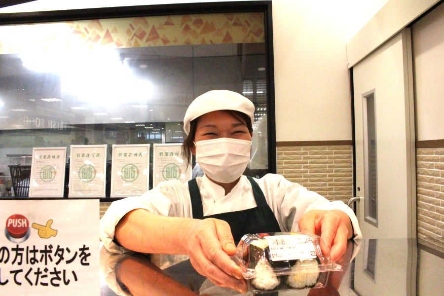 〇店頭・・・お客さんが選んだおにぎりを容器に詰める、汁物をよそる。など(人と接することが好きな人・お金は触りません)