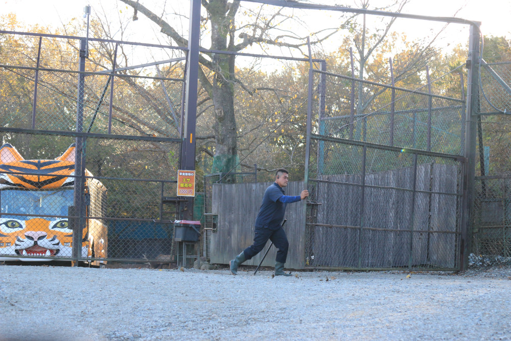 サファリパークのゲートの開閉作業スタッフ