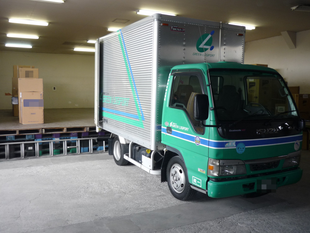 4tトラックでの家電製品の輸送。(高速道路で移動)