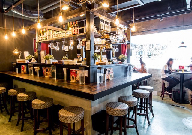 店舗は海外のバルのような雰囲気をイメージし、バーと食堂が融合したスペインバル風のデザイン。