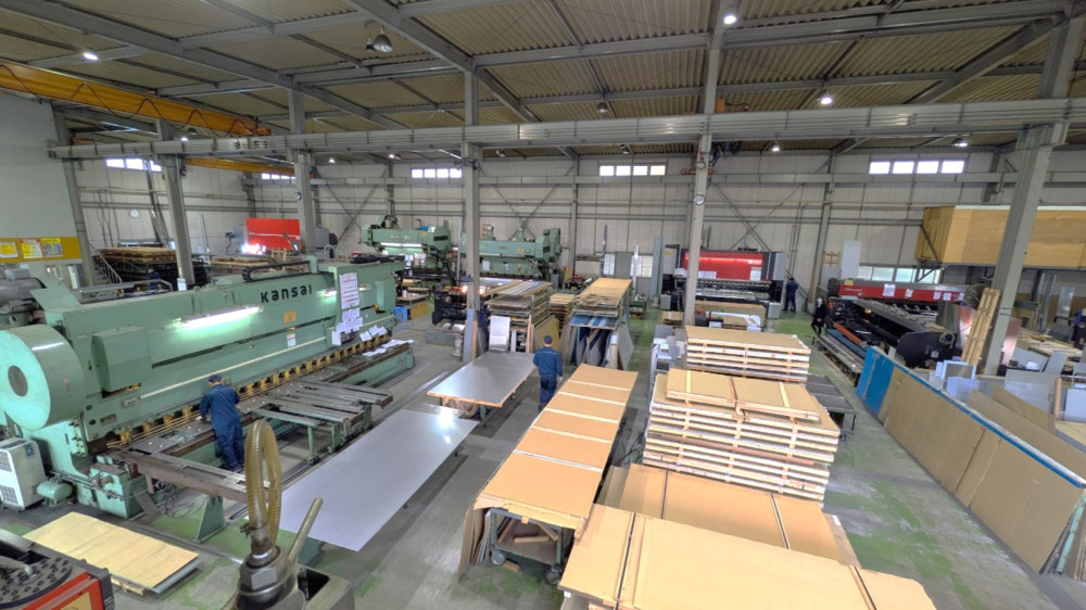 私たち「株式会社三榮」は、なくてはならない素材であるステンレスの流通業、いわゆる問屋さんです。平野工場は三榮の主力加工部門です。