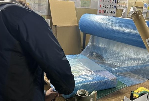 商品を丁寧に梱包して発送準備